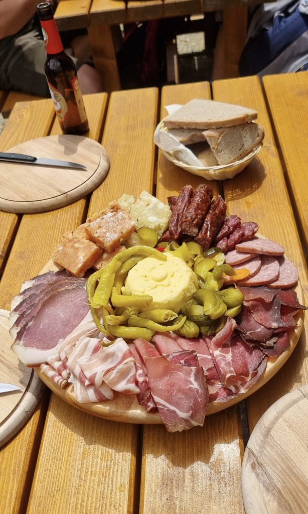 Der Abstieg führte uns durch das idyllische Rosanintal in Richtung Schönfeld. Unser Weg endete bei der gemütlichen Esslhütte, wo wir den Wandertag bei köstlichen Speisen und Getränken in geselliger Runde ausklingen ließen.